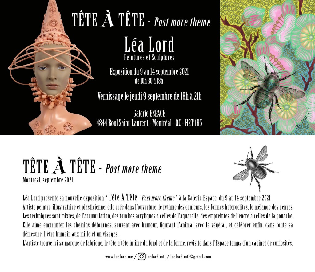 Du 9 au 14 septembre, exposition « Tête À Tête – Post more theme »… suite de l’exposition de mars 2020 interrompue par la pandémie!